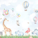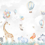 Papier peint Aquarelle d’animaux et de ballons