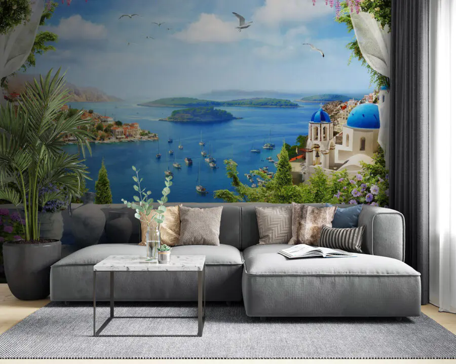 16.32 €9.79 €Papier peint Fenêtre avec vue sur une ville et un plan d’eau