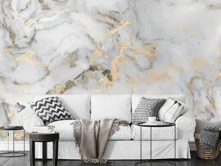 Papier peint Marbre élégant avec veines métalliques