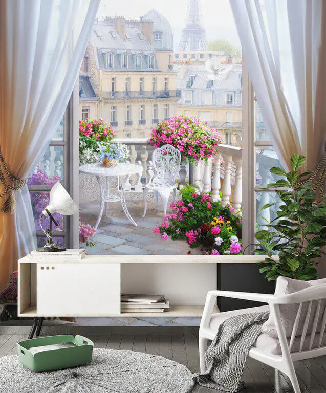 Papier peint Balcon avec vue sur la tour Eiffel