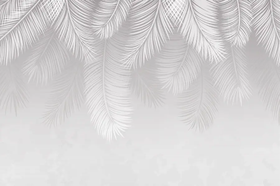 Papier peint Motif de plumes blanches sur fond gris