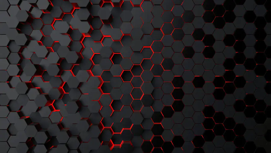 Papier peint Un hexagone noir avec une lumière rouge