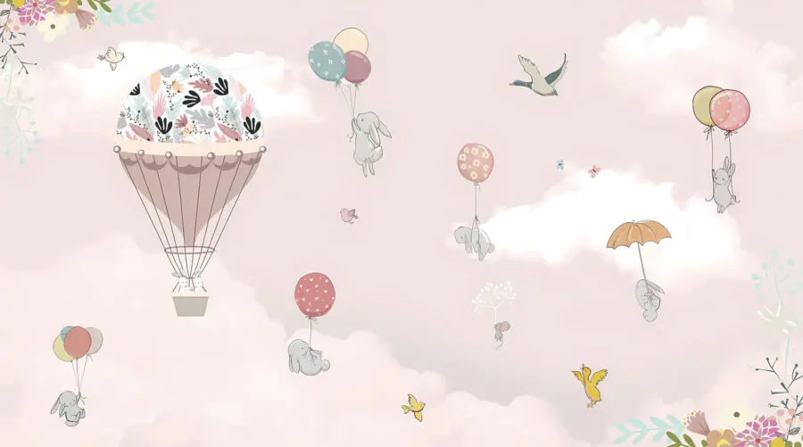 16.06 €8.83 €Papier peint Groupe de nuages roses et lapin tenant des ballons