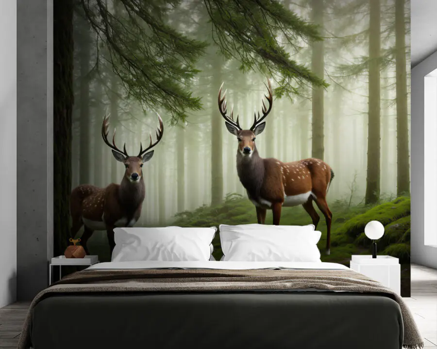 Papier peint Deux cerfs dans une forêt