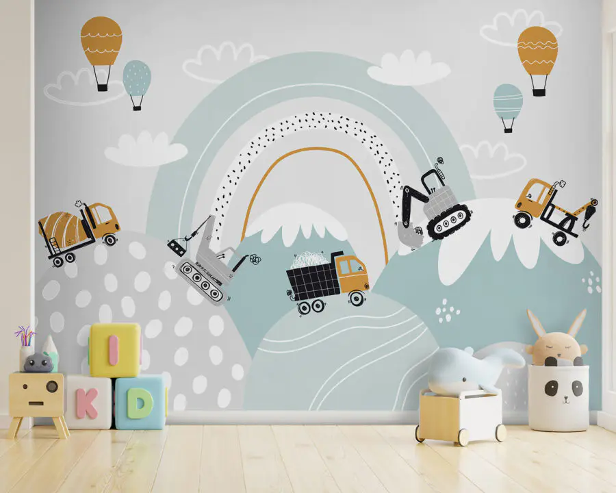 Papier peint Dessin animé de véhicules et d’un arc-en-ciel