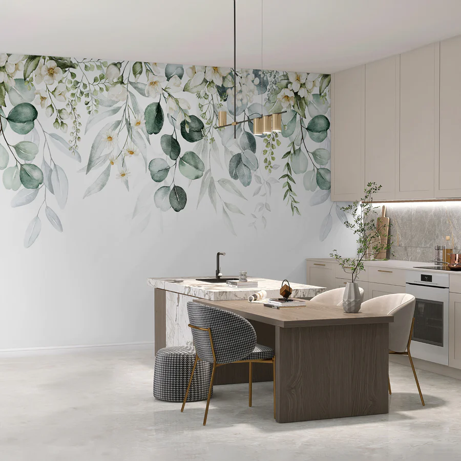 Papier peint Aquarelle de fleurs et de feuilles