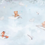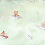 Papier peint Un avion en papier et des ours en peluche