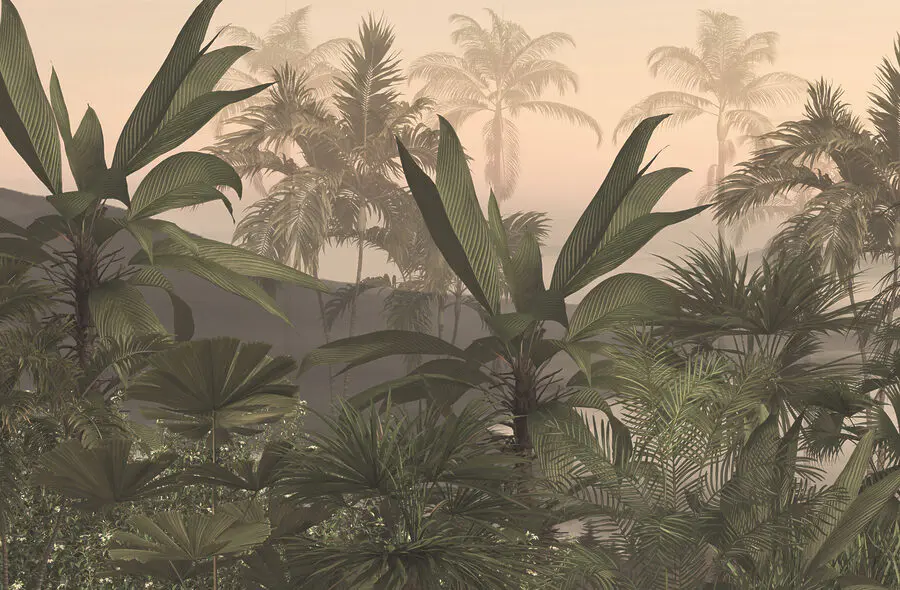Papier peint Groupe de palmiers dans une forêt brumeuse