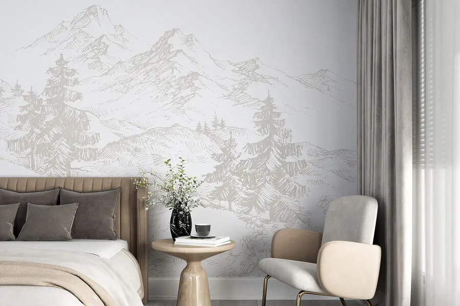 15.50 €9.30 €Papier peint Dessin d’une chaîne de montagnes enneigées