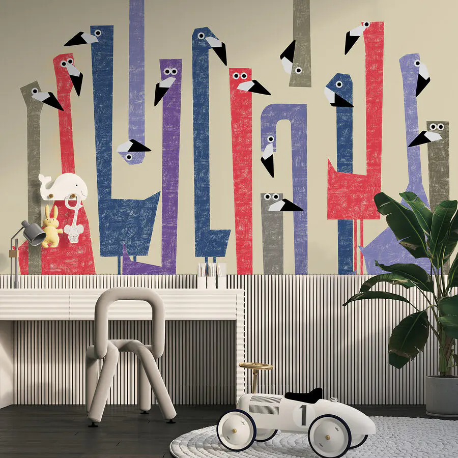 Papier peint Groupe d’oiseaux aux formes colorées différentes