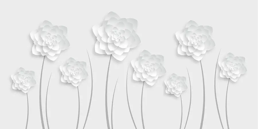 Papier peint Fleurs en papier blanc sur fond blanc