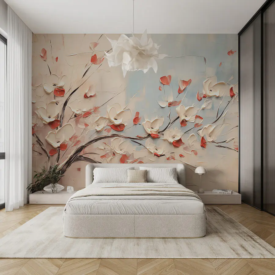 15.50 €9.30 €Papier peint Arbre avec des fleurs et des feuilles blanches