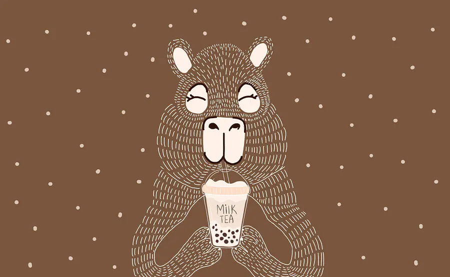 Papier peint Animal de dessin animé tenant une tasse de thé au lait