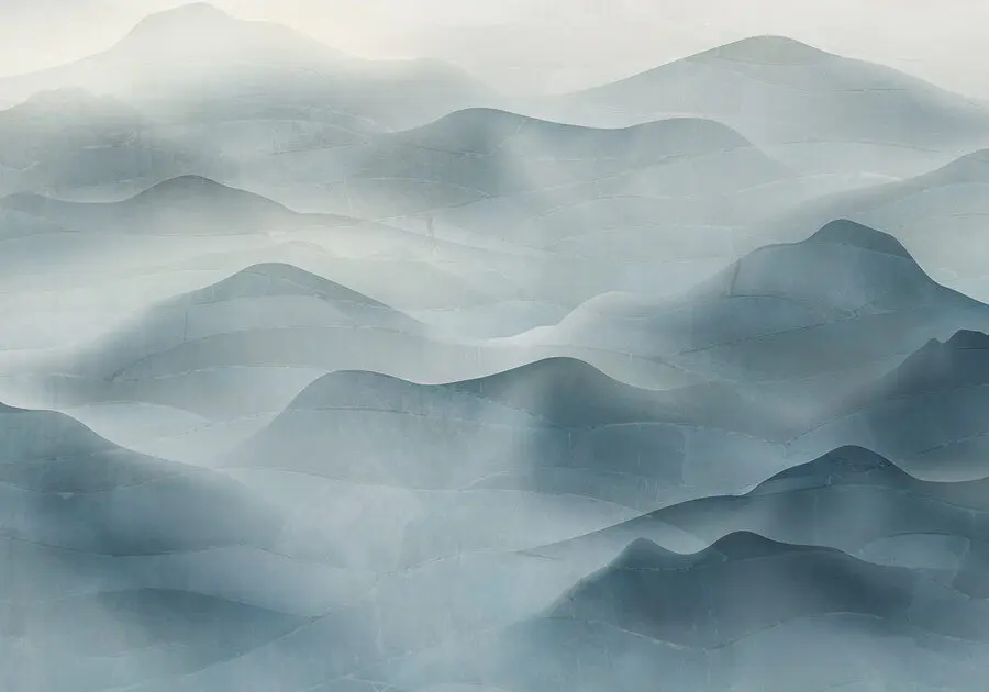 Papier peint Un paysage brumeux avec des montagnes