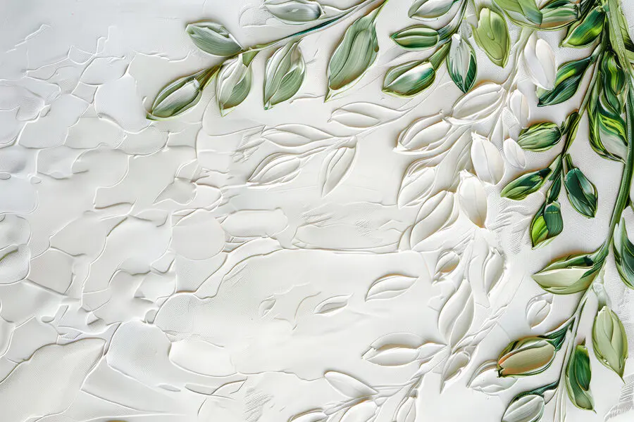 Papier peint Surface blanche avec des feuilles vertes