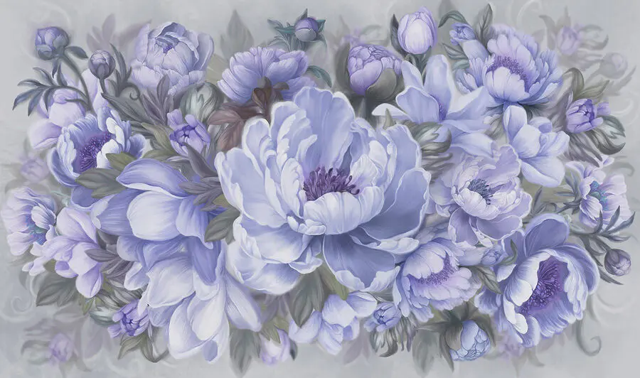 Papier peint Peinture de fleurs et de feuilles