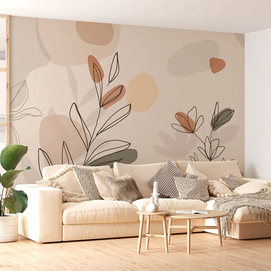 Papier peint Dessin de feuilles et de fleurs