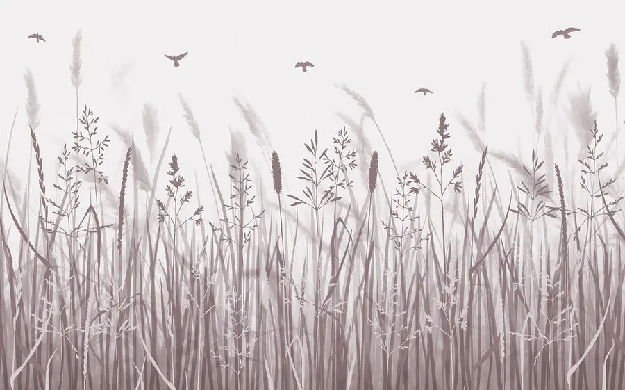 Papier peint Champ d’herbe avec des oiseaux en vol