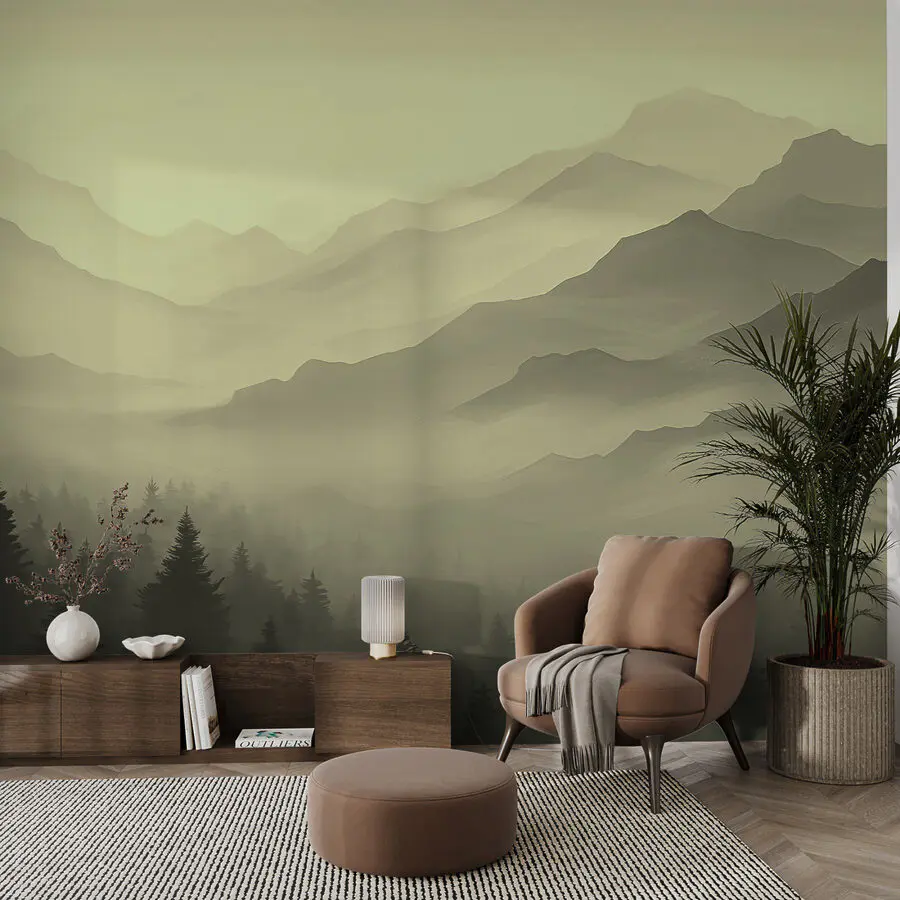 Papier peint Paysage de montagne brumeux avec des arbres