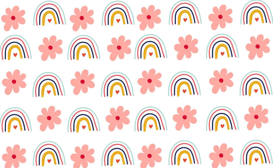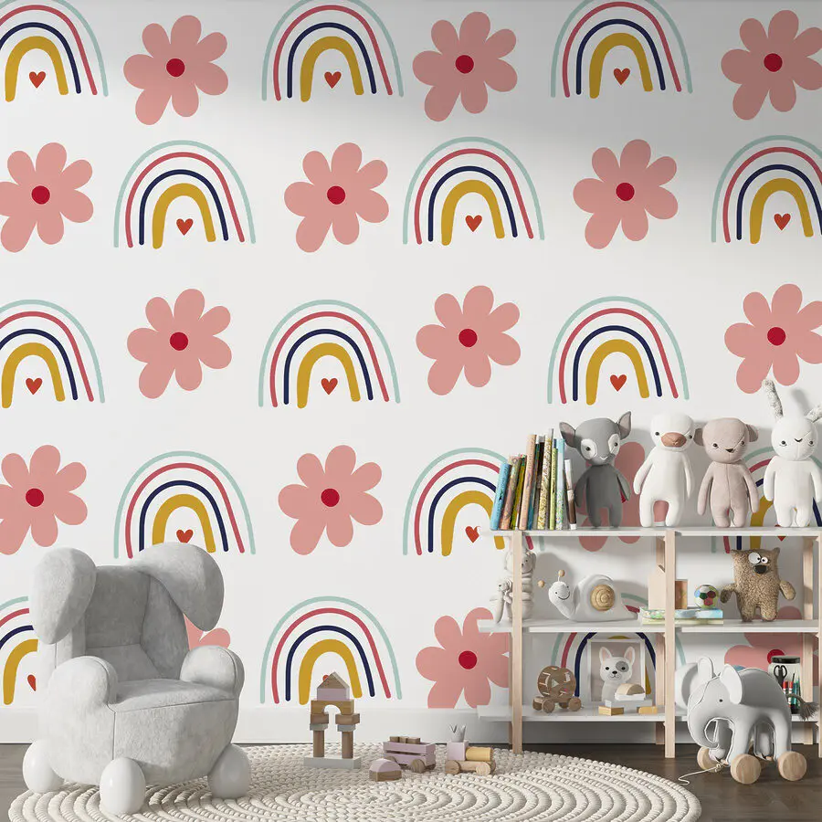 Papier peint Motif de fleurs et d’arcs-en-ciel