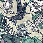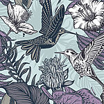 Papier peint Oiseau volant à côté de fleurs