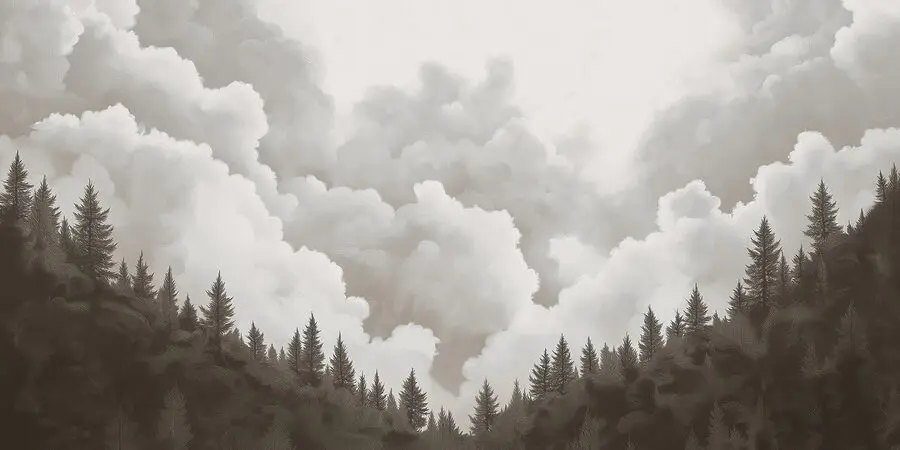 15.50 €9.30 €Papier peint Paysage de montagnes avec arbres et brouillard