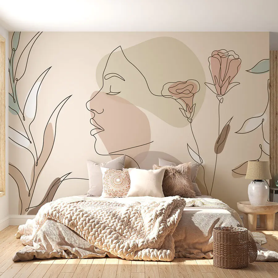 Transformez votre espace avec cette superbe peinture murale, "Visage de femme avec fleurs". Imaginez que vous entrez dans une pièce et que vous êtes accueilli par cette présence sereine et cette douce étreinte florale - c'est comme si les murs vous étreignaient chaleureusement. Les lignes douces et les couleurs pastel créent une ambiance apaisante, parfaite pour un coin lecture confortable ou une chambre à coucher paisible. Il évoque l'élégance sans être trop tape-à-l'œil. De plus, qui ne voudrait pas d'un beau visage entouré de fleurs ? La peinture murale n'est pas qu'un simple décor ; elle raconte une histoire, invitant à la rêverie et à de petits moments de joie chaque fois que vous la regardez. Allez-y, laissez la beauté de la nature pimenter vos murs !