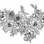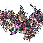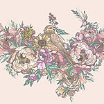 Papier peint Oiseau assis sur un bouquet de fleurs