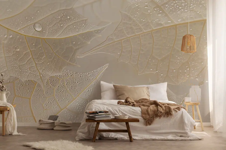 Papier peint Feuilles délicates avec la rosée du matin