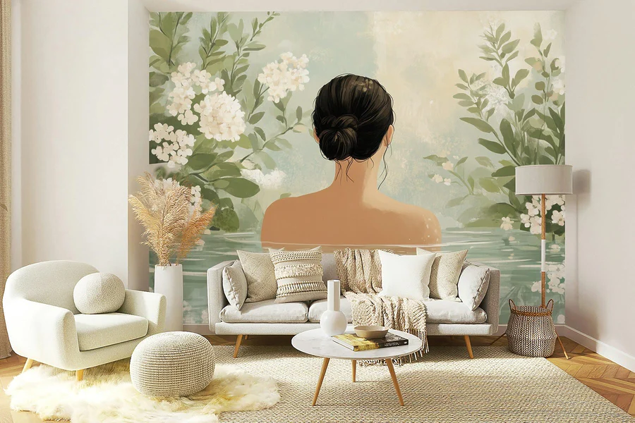 Papier peint Femme dans l’eau avec des fleurs