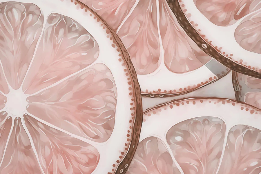 Papier peint Tranches d’agrumes frais dans des tons doux
