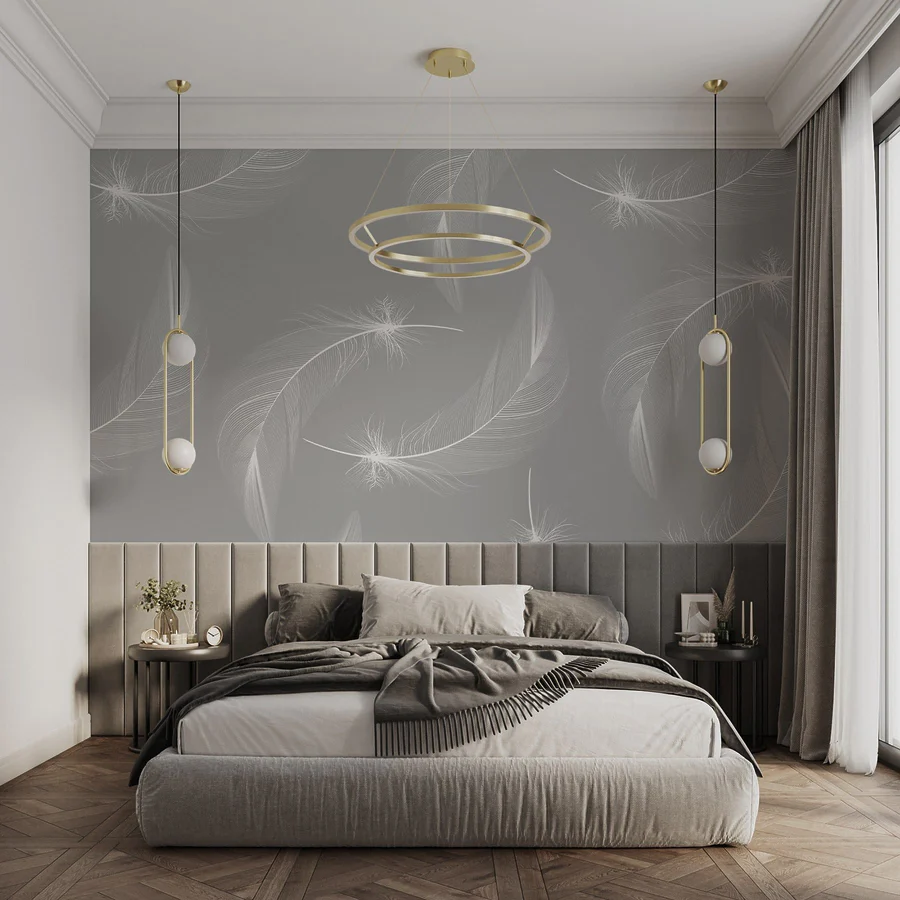 Papier peint Plumes blanches sur fond gris
