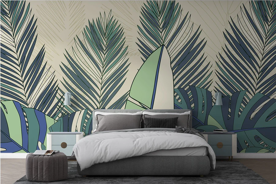 15.50 €9.30 €Papier peint Papier peint avec des feuilles et des fleurs