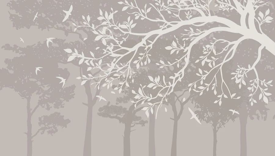 Papier peint Groupe d’arbres avec oiseaux en vol