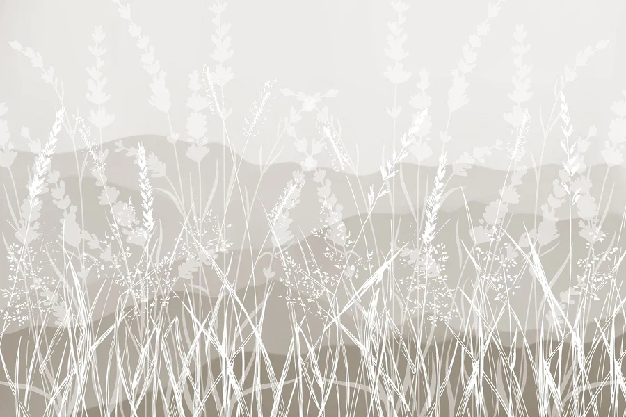 Papier peint Champ d’herbe avec une montagne en arrière-plan