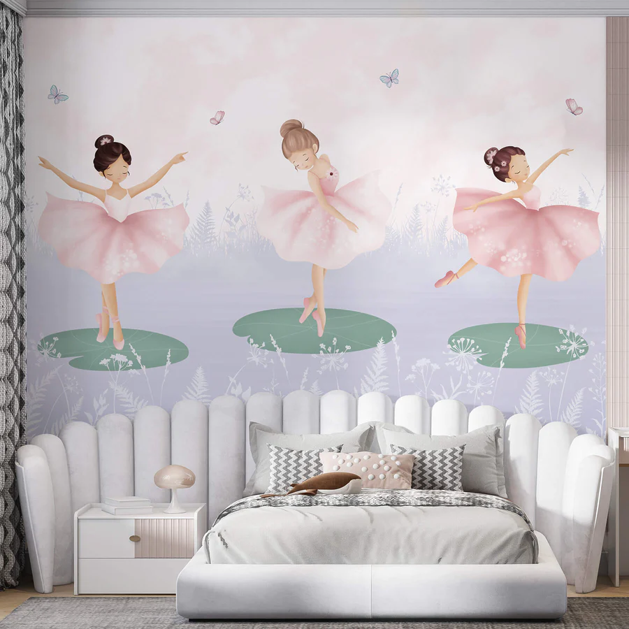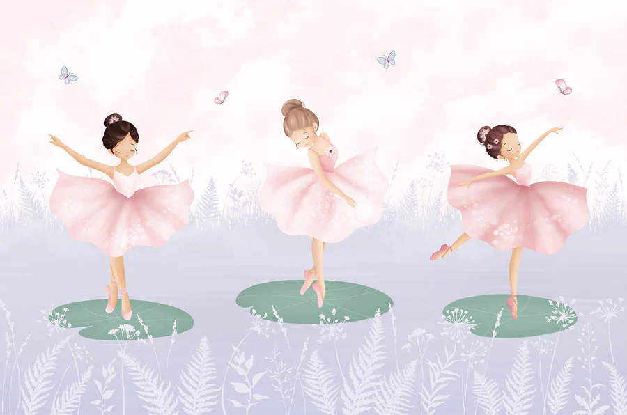 Papier peint Groupe de filles en tutu dansant sur des nénuphars