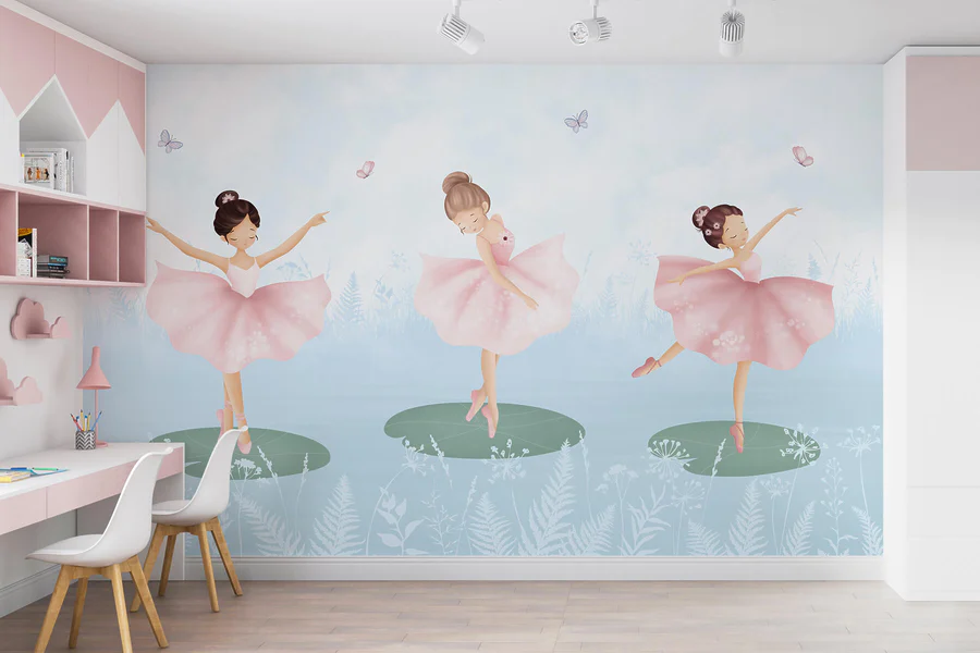Papier peint Groupe de filles en tutu rose dansant sur des nénuphars