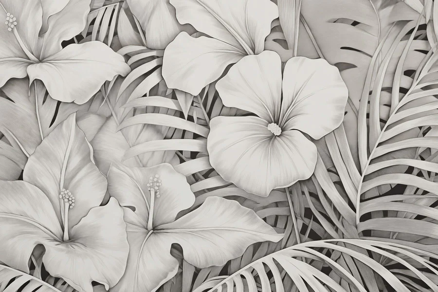 Papier peint Feuillage luxuriant dans des tons monochromes