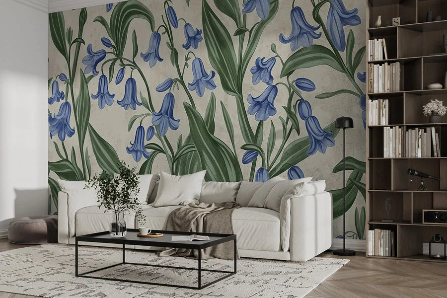 Papier peint Des fleurs bleues sereines dans des teintes douces
