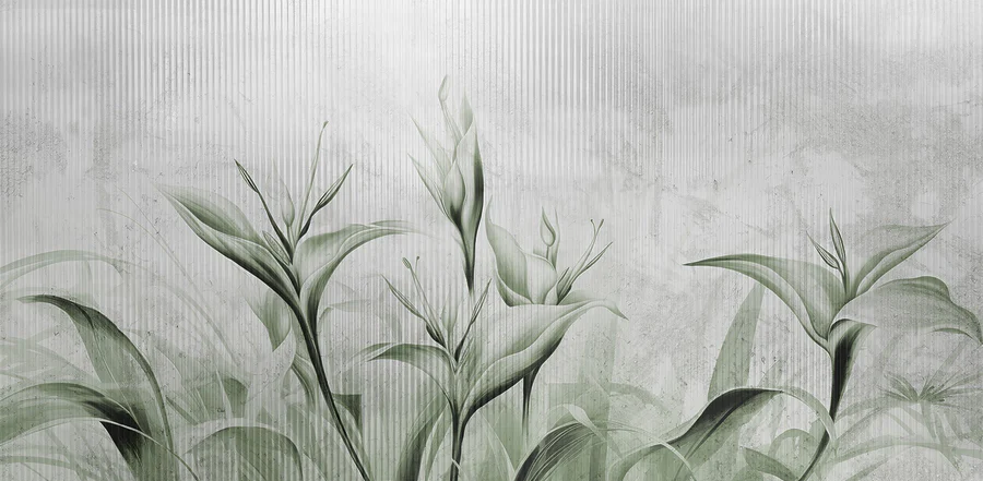 Papier peint Feuillage vert élégant sur fond doux