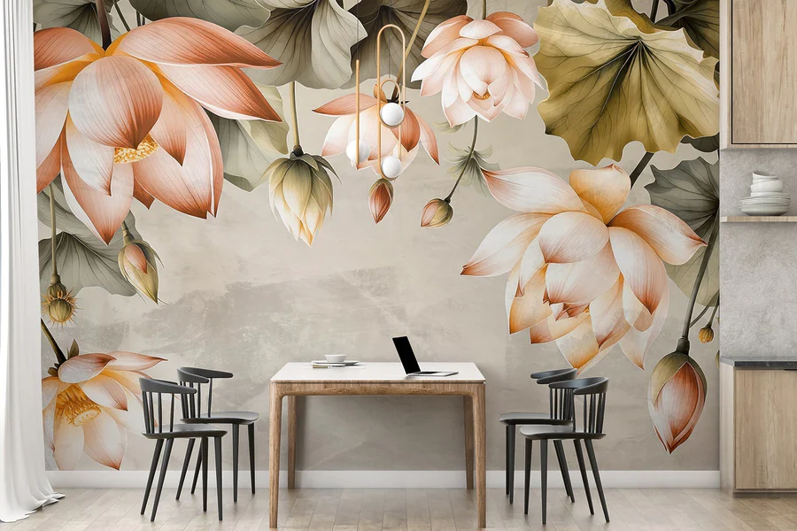Papier peint Des fleurs délicates aux teintes douces