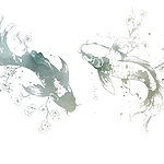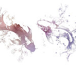 Papier peint Deux poissons avec des fleurs et des feuilles