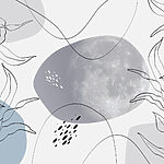 Papier peint Lune et plantes sur fond blanc