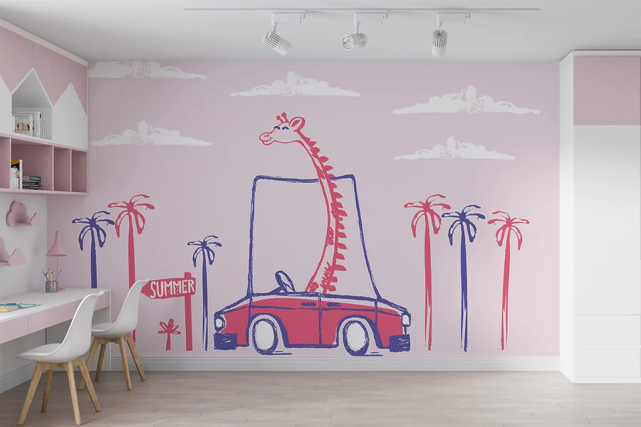 Papier peint Girafe dans une voiture