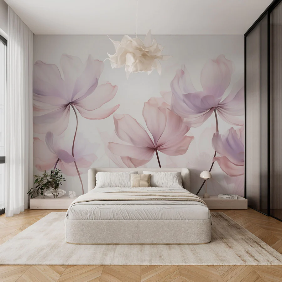 Papier peint Des fleurs délicates aux teintes douces
