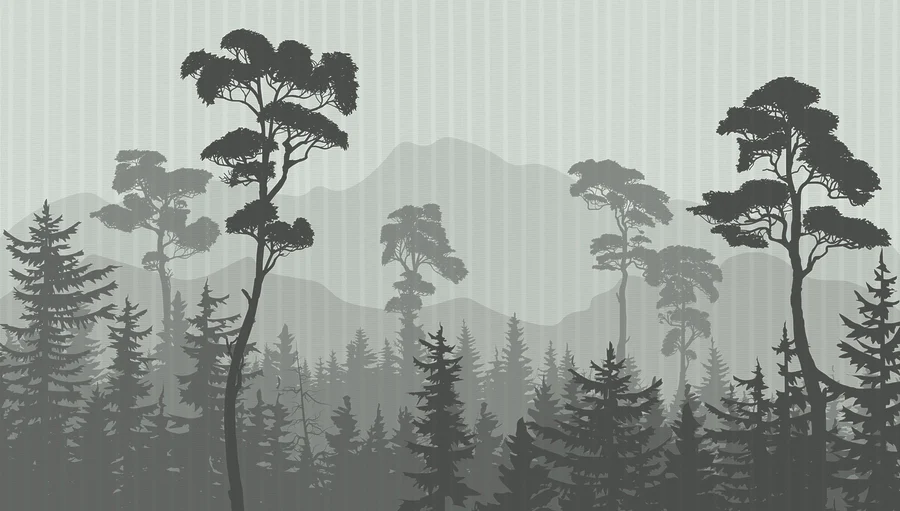 15.50 €9.30 €Papier peint Paysage de montagnes avec arbres et brouillard