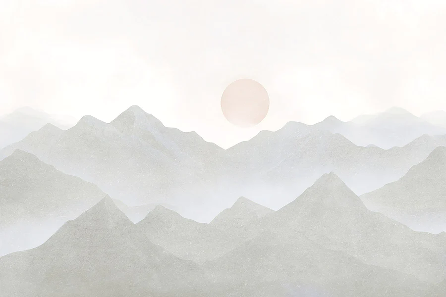 Papier peint Chaîne de montagnes avec le soleil au loin