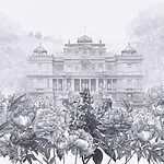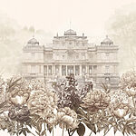 Papier peint Grand bâtiment blanc avec des fleurs