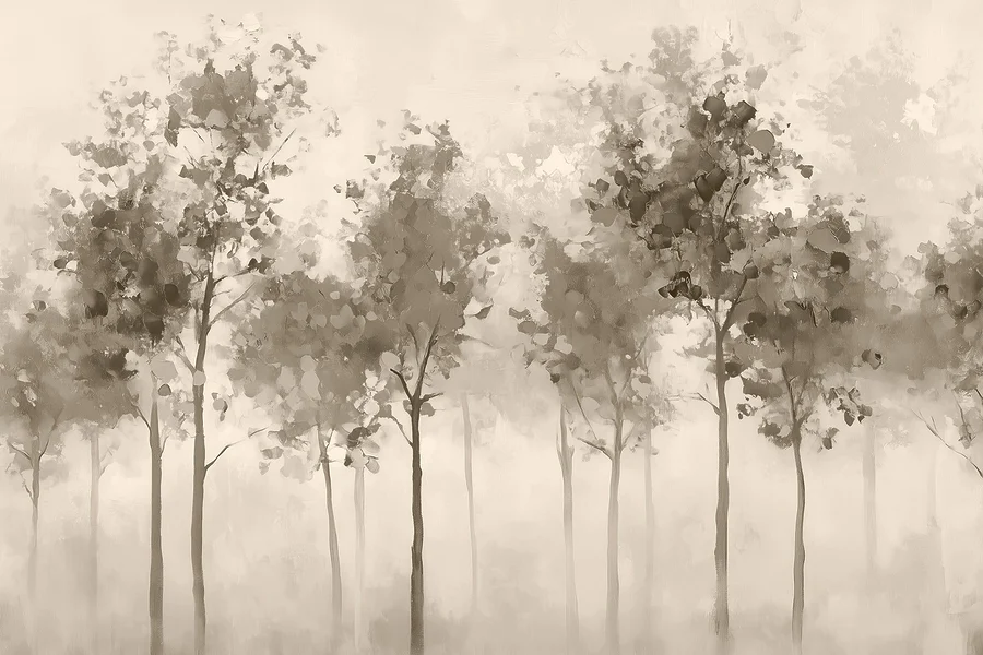 Papier peint Groupe d’arbres dans une zone brumeuse