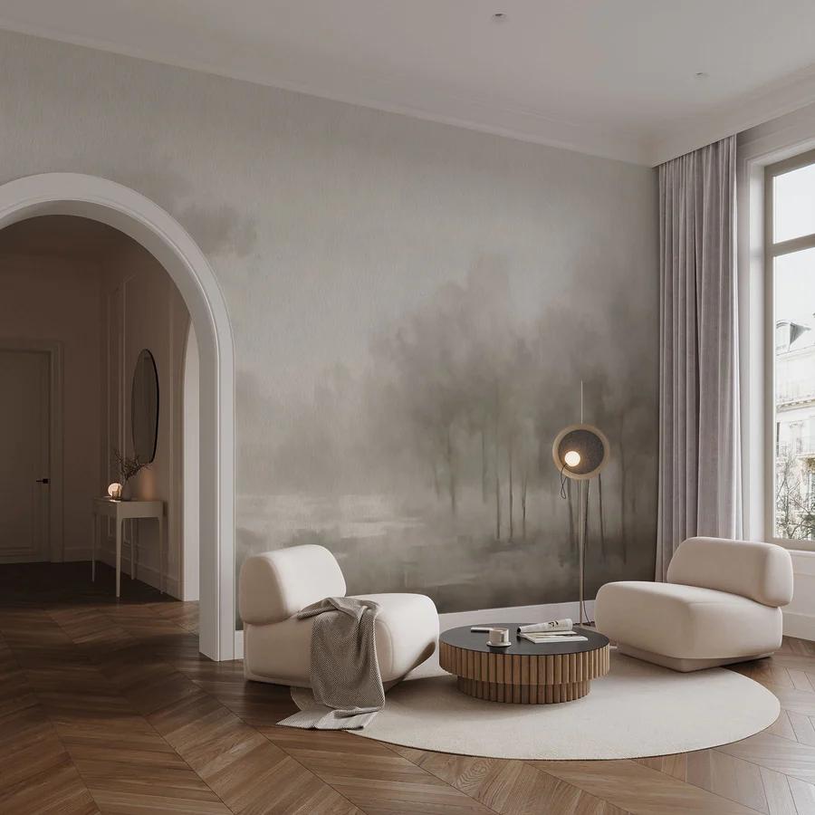15.50 €9.30 €Papier peint Paysage de montagnes avec arbres et brouillard